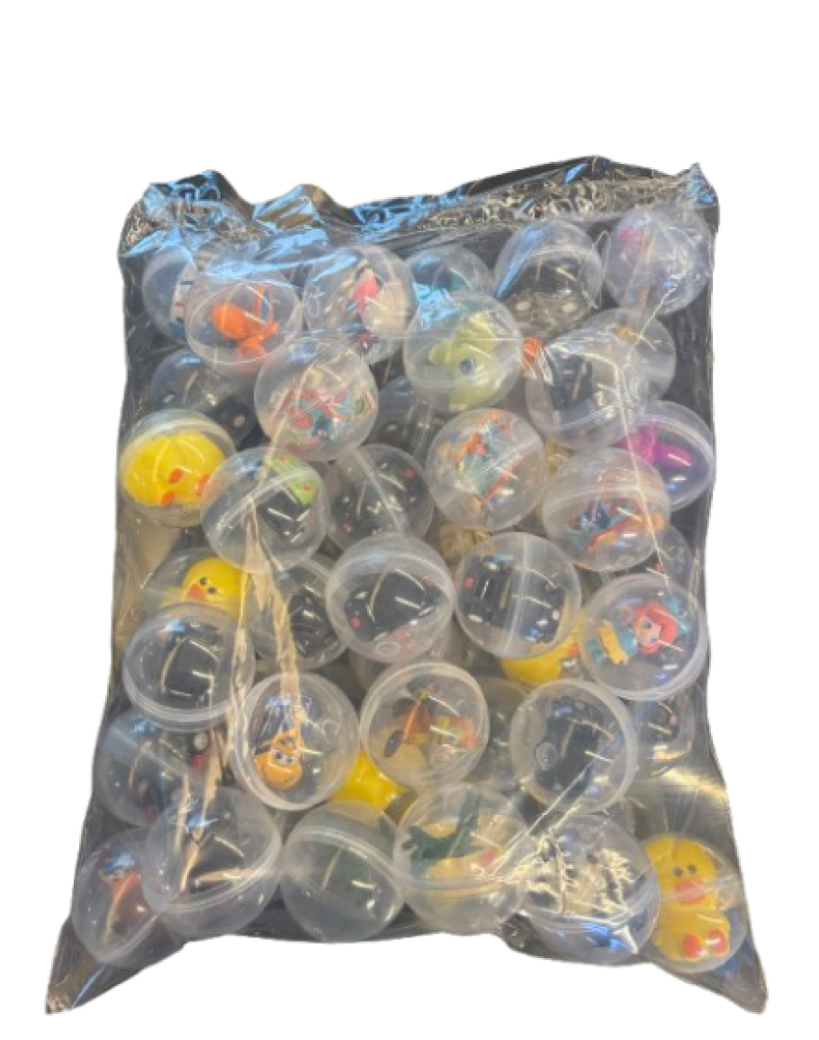 Κάψουλα Φ65 με διάφορα παιχνίδια σε πακέτο 50 τεμαχίων.